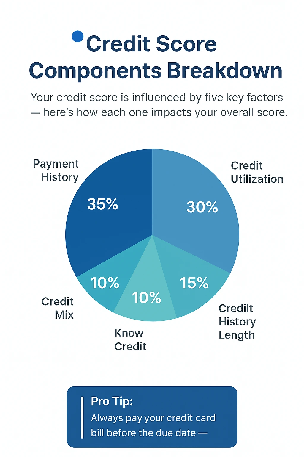 | Credit Mix | 10% | Maintain a healthy mix of secured (home/car) and unsecured (credit/personal) loans. | Relying only on unsecured loans or lacking variety. |